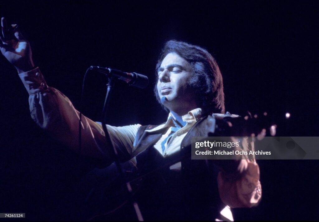 LOS ANGELES – CIRCA 1977: Singer Neil Diamond performs onstage with an Ovation acoustic guitar in circa 1977 in Los Angeles, California. (Photo by Michael Ochs Archives/Getty Images)